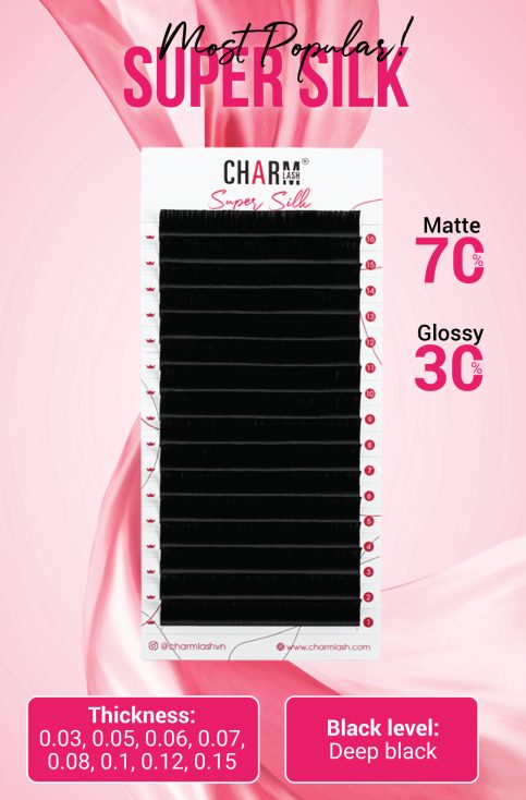 CharmLash offers a wide range of lashes in various thicknesses, lengths, curls, and colors, from natural to dramatic styles. Made with premium PBT fibers from Korea, Japan, and Germany, our products ensure softness, durability, and long-lasting retention with consistent professional quality.