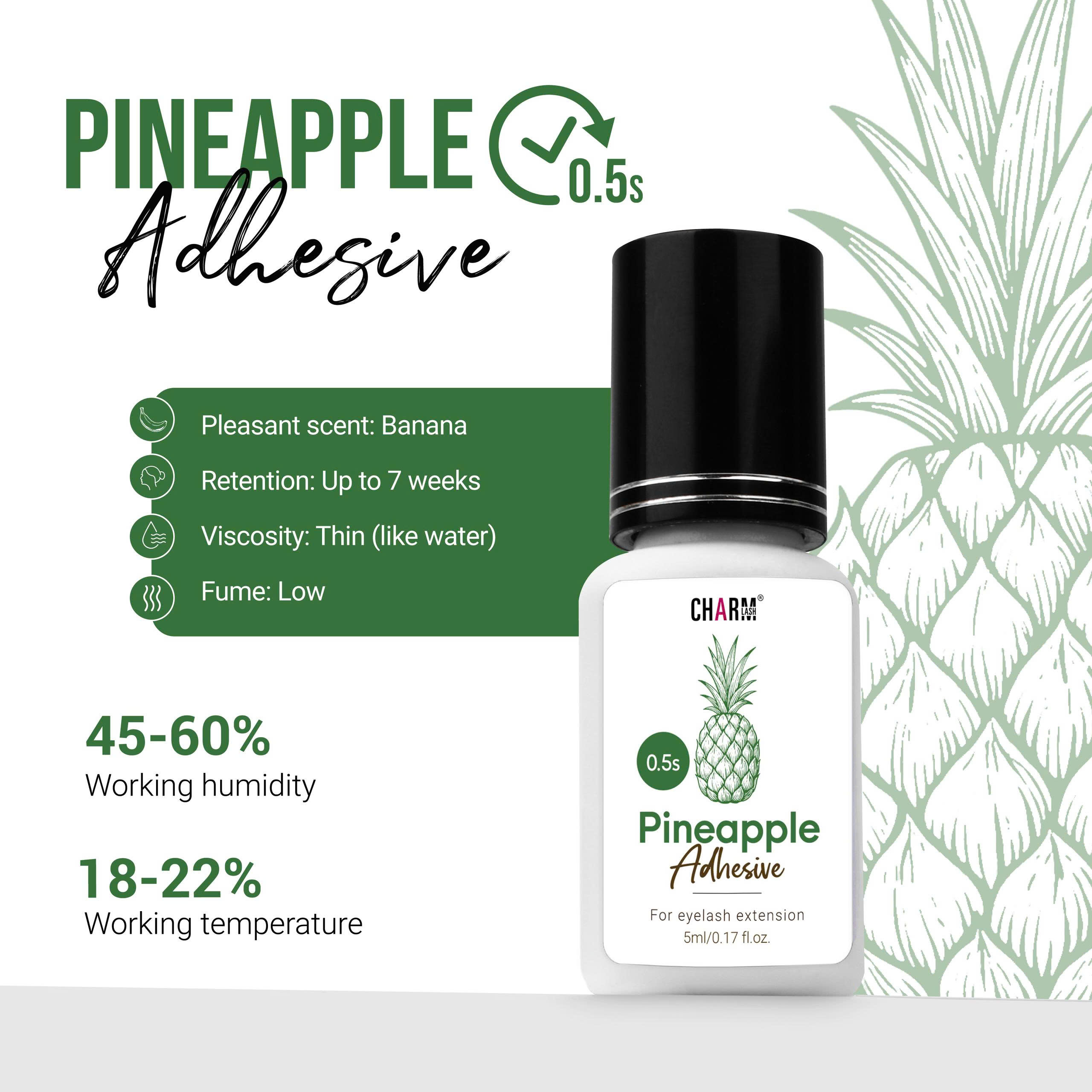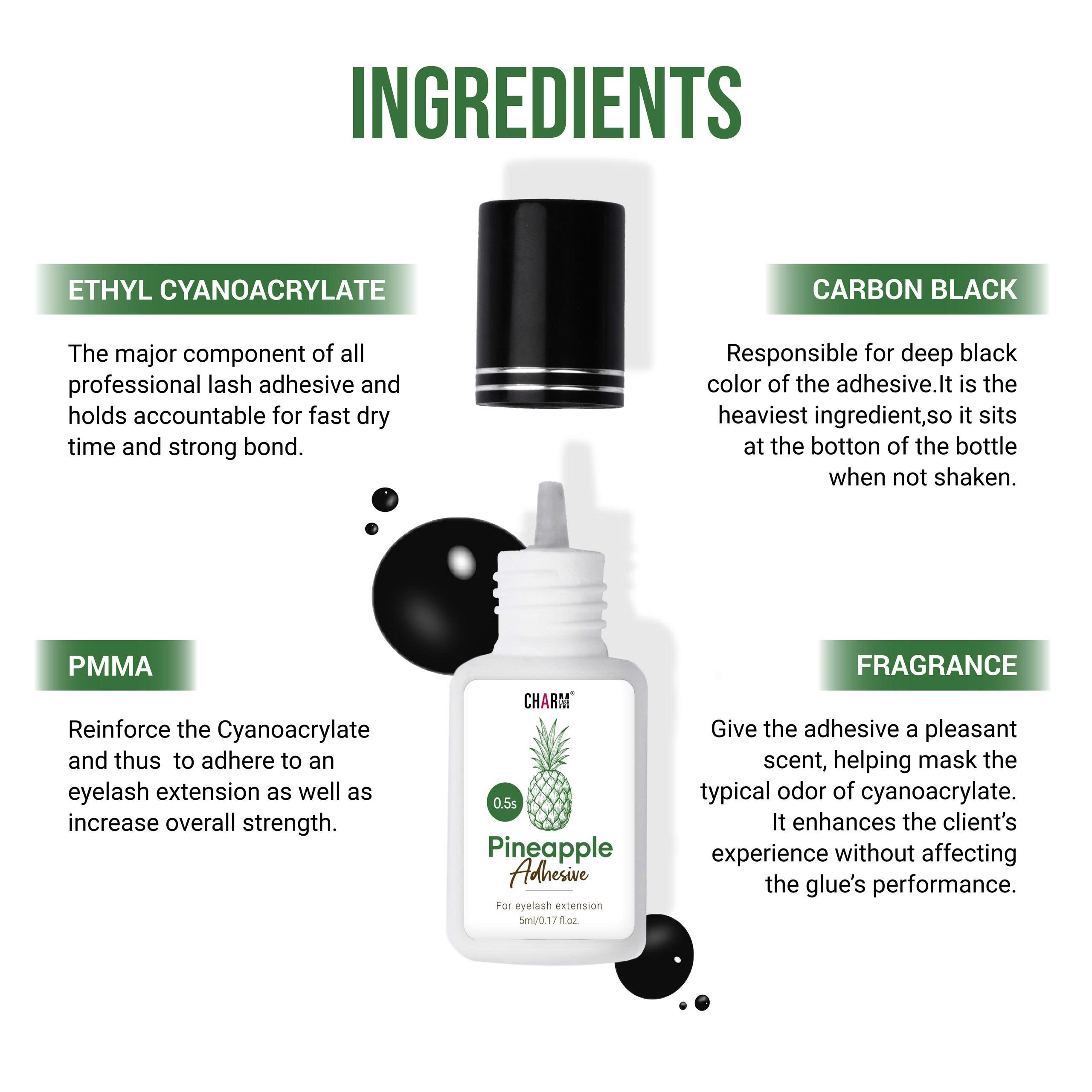 Our Pineapple-scented lash extension adhesive helps your lashes cling to the natural lash until they shed naturally, allowing you to take your retention and application to new heights.